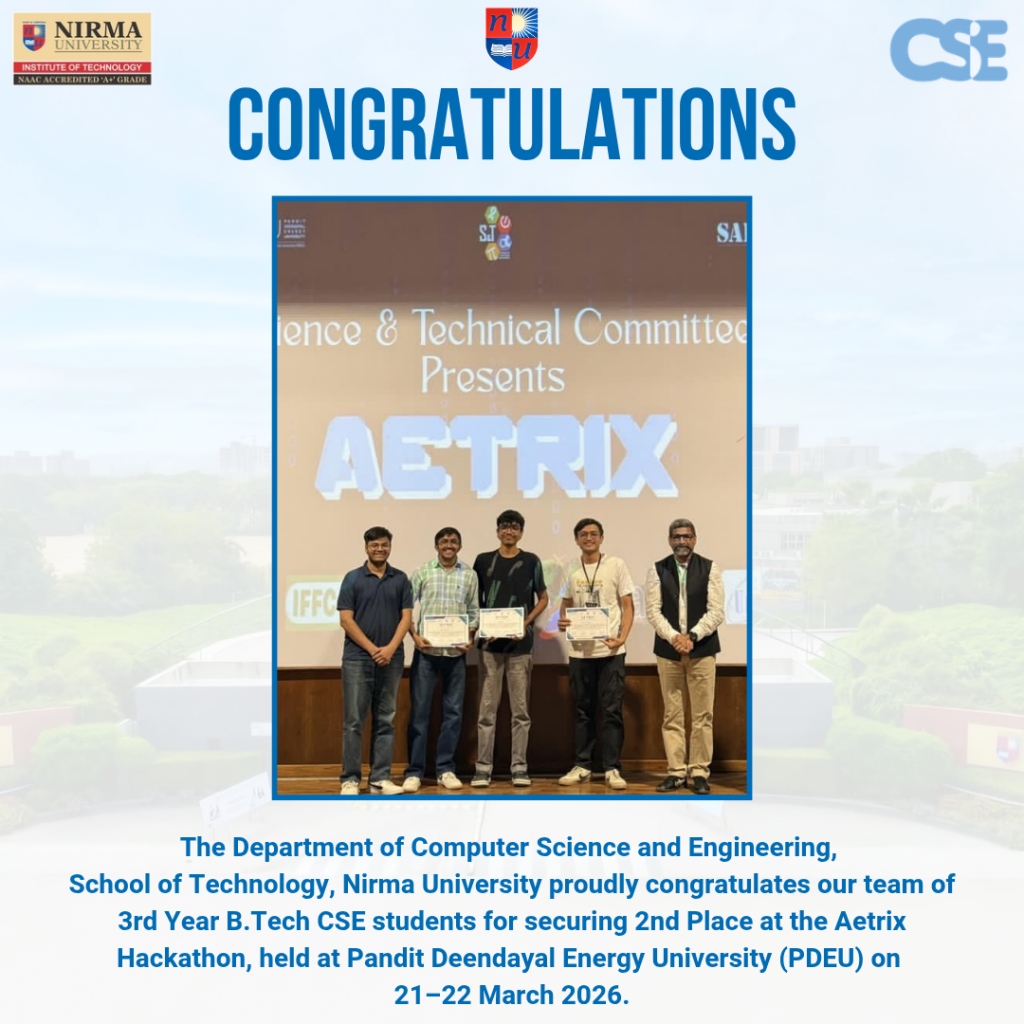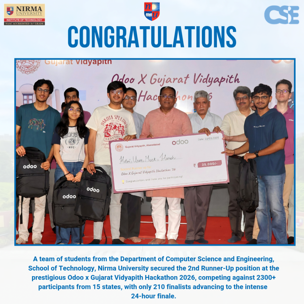 Team BruteForceForGlory, CSE Dept, IT NU, Nirma University became the first runners up (prize money USD 200) in MINeD 2022 hackathon organized by Centre of Excellence in Data Science, CSE Department at Nirma University during March 3-5, 2022.