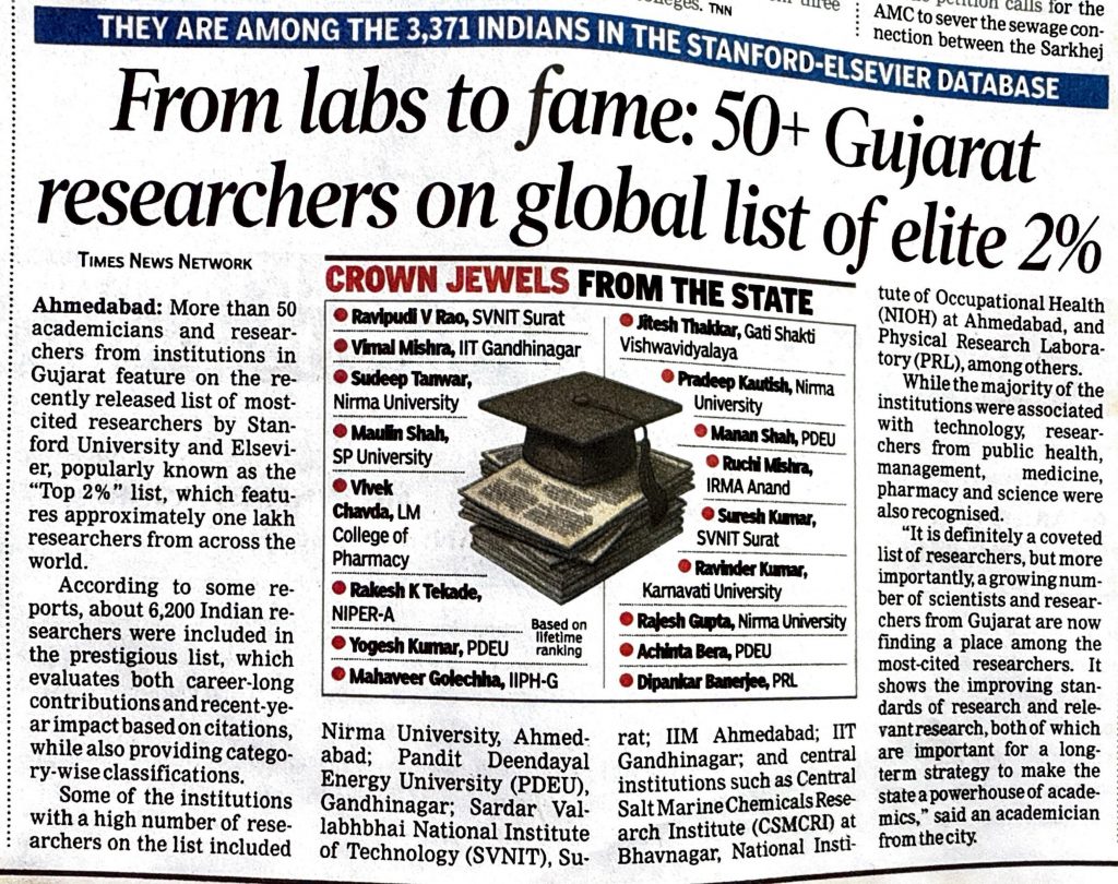 #NirmaUniversity #Top2Percent #StanfordUniversity #ResearchExcellence #ComputerScience #Engineering #Elsevier